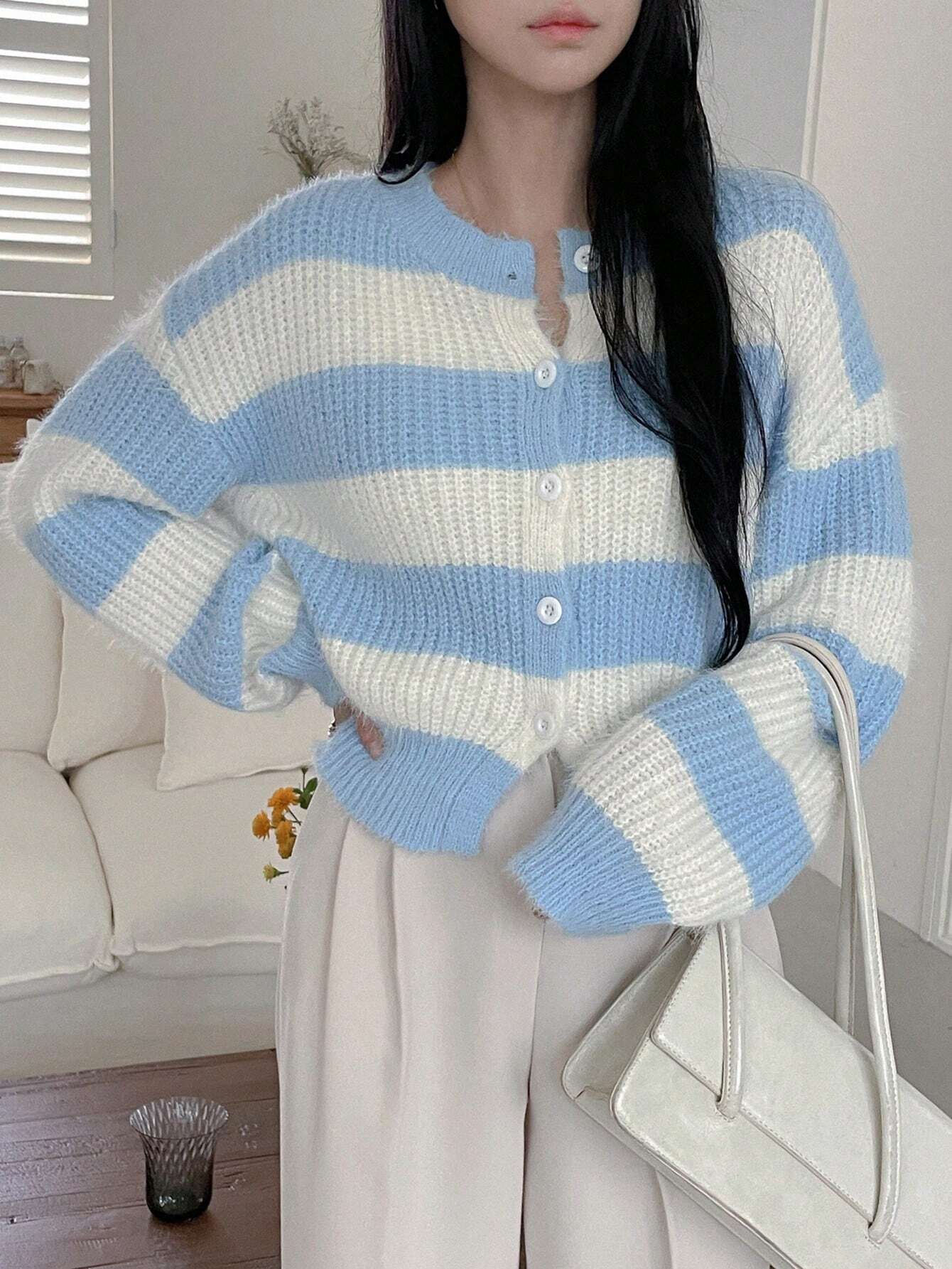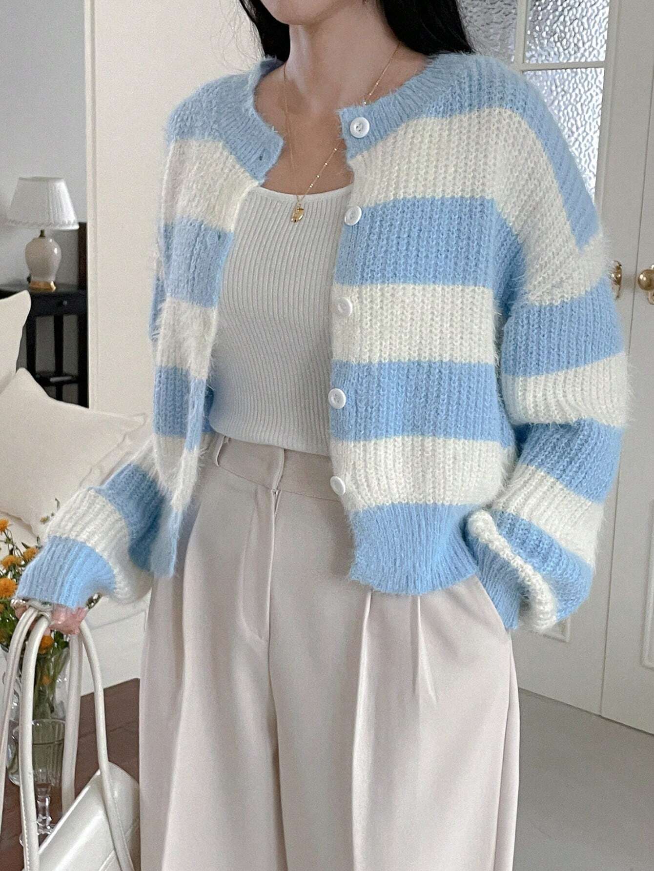 Stay cozy and stylish this season with the DAZY Cozy Striped Button-Up Cardigan – a must-have layering essential! 💙✨