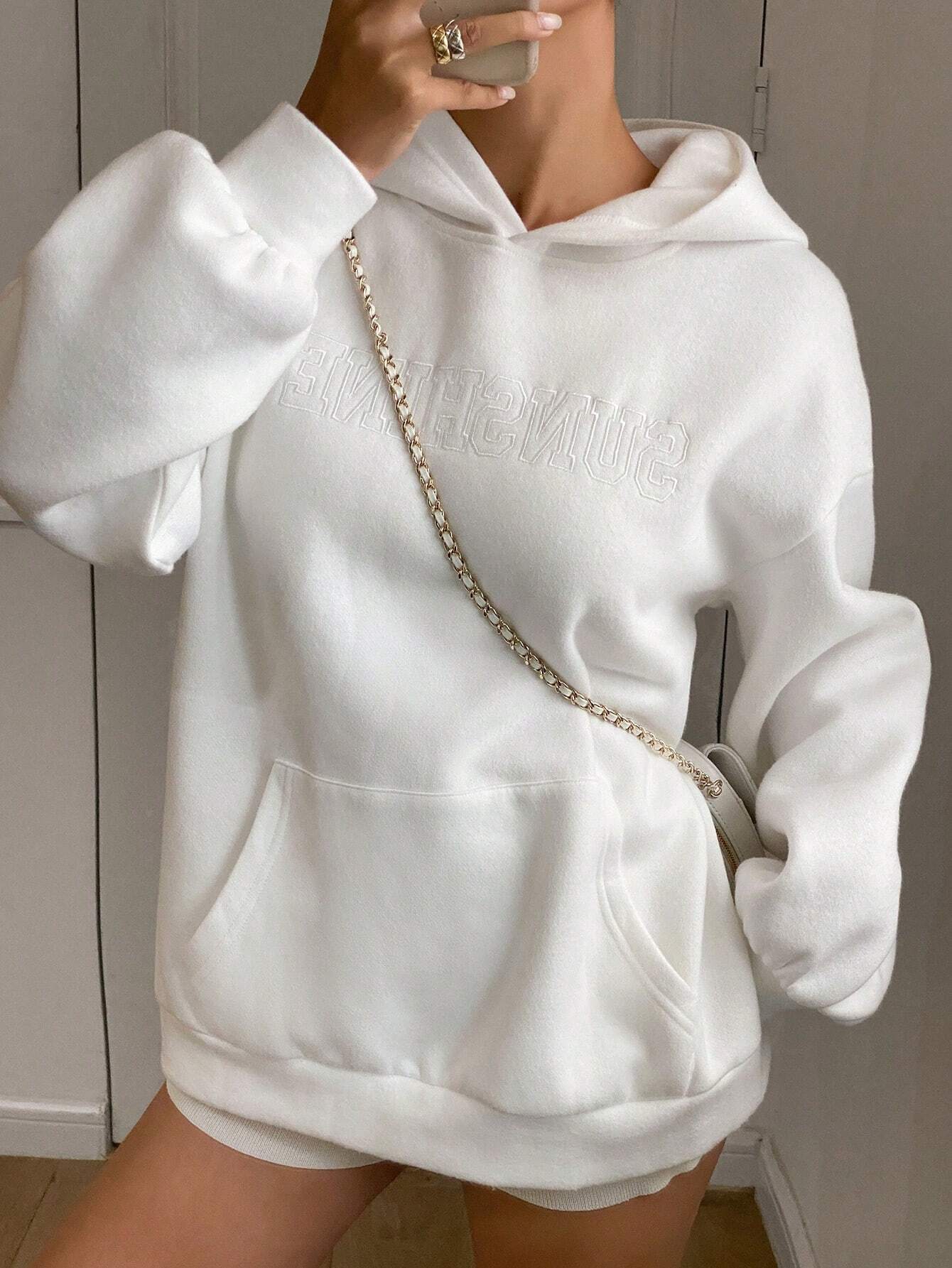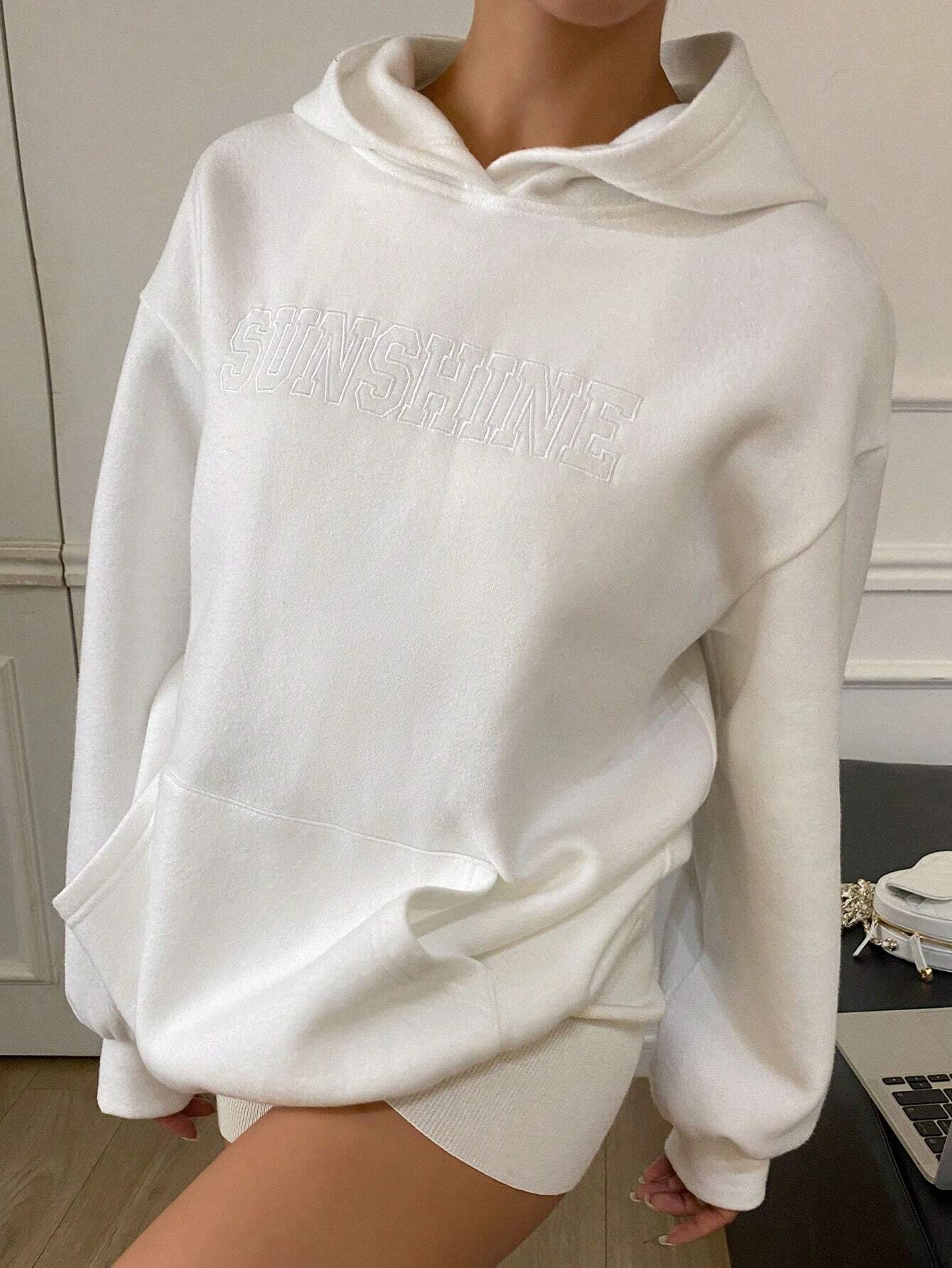 Stay stylishly warm with the DAZY Oversized Embroidered Hoodie, the ultimate cozy essential for your casual wardrobe. Designed with drop shoulders, a hooded neckline, and kangaroo pocket, this hoodie is both functional and trendy. The "SUNSHINE" embroidery adds a subtle detail to complete the look. Perfect for layering during spring and autumn weather.