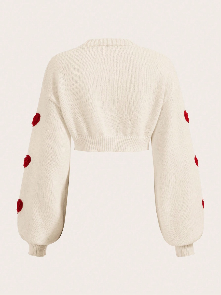 Upgrade your everyday style with the ROMWE Kawaii Heart Button Crop Top! Designed for a chic and playful look, this casual top features a flattering V-neckline, bishop sleeves, and adorable heart embroidery. Its crop length and tight hem make it perfect for pairing with high-waisted jeans or skirts, while the soft, slightly stretchy knitted fabric ensures comfort all day long. Whether you're out for coffee or chilling with friends, this top is a must-have for your spring and fall wardrobe.