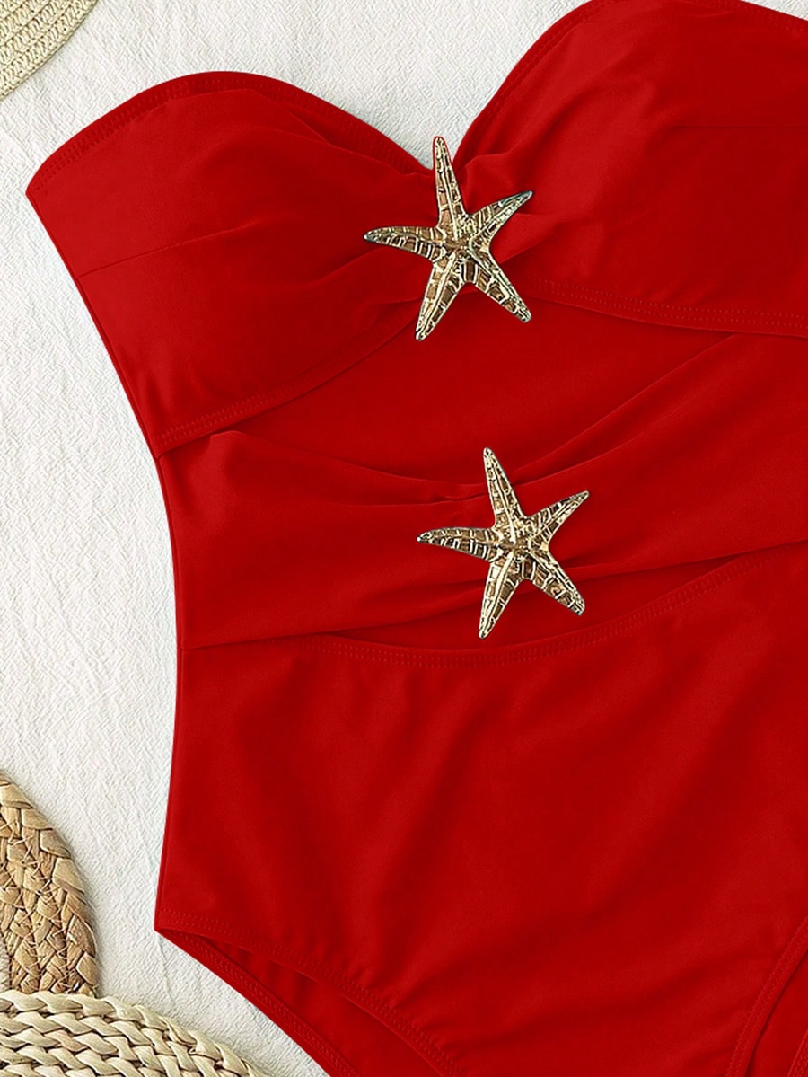 Turn heads this summer with the 2025 Red Starfish Charm One-Piece Swimsuit. Featuring a strapless sweetheart neckline and stunning gold starfish detailing, this swimsuit is perfect for your next beach day, tropical escape, or summer party. Made with stretchy, body-hugging fabric and a flattering high-cut leg, it offers both comfort and confidence. Whether lounging by the sea or capturing that perfect Instagram moment, this piece brings charm and elegance to your swimwear collection.