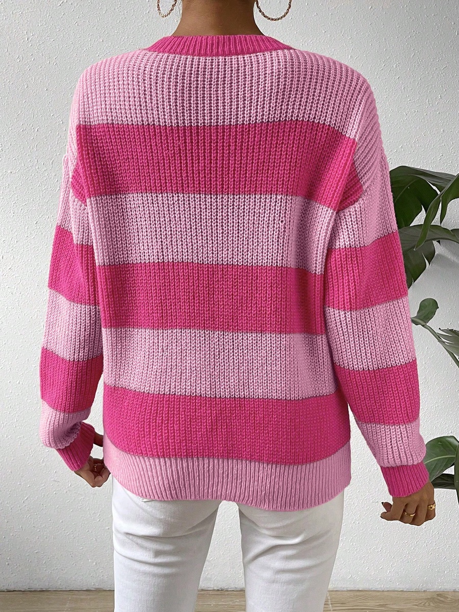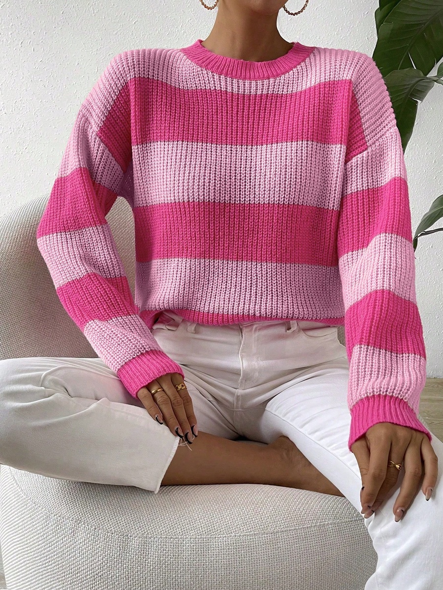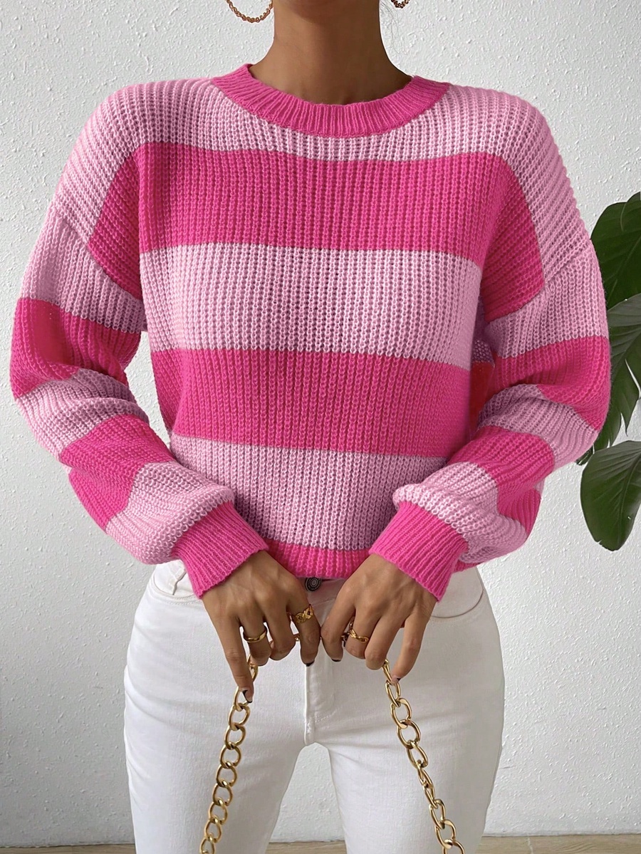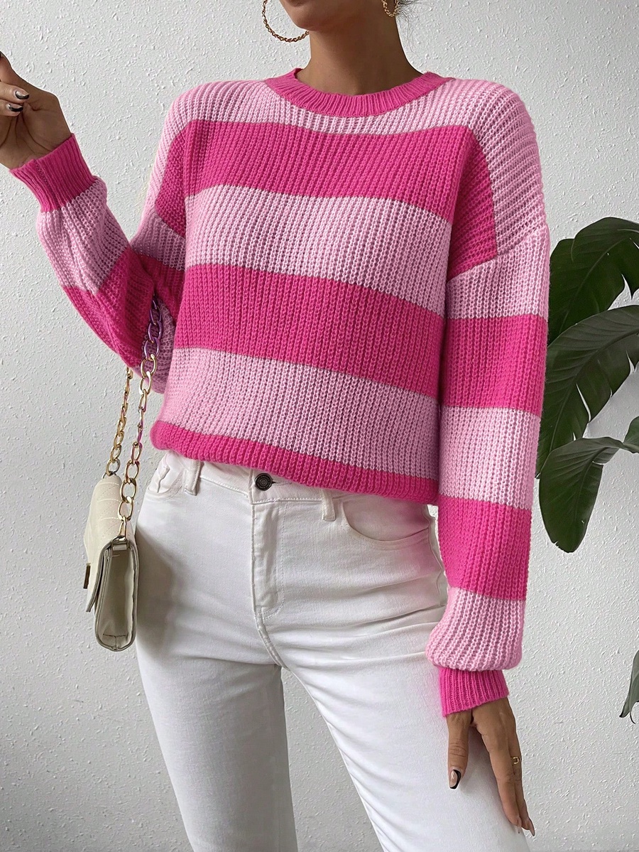 Add a pop of color to your casual wardrobe with this stylish Rib-Knit Pullover. Featuring a round neckline and drop shoulder sleeves, this piece combines comfort and fashion effortlessly. The long sleeves and regular hem make it perfect for Spring/Fall weather, keeping you cozy and chic.