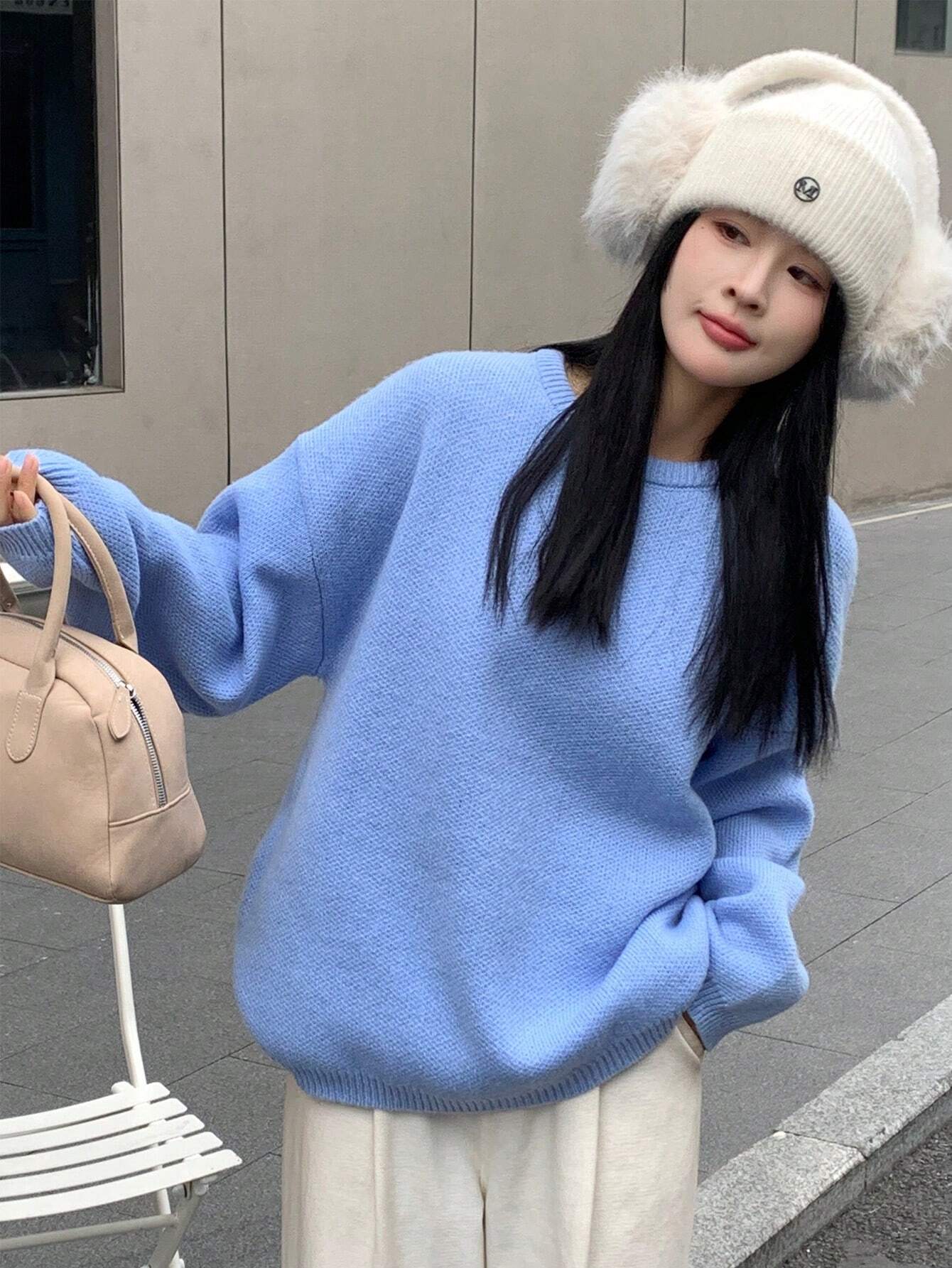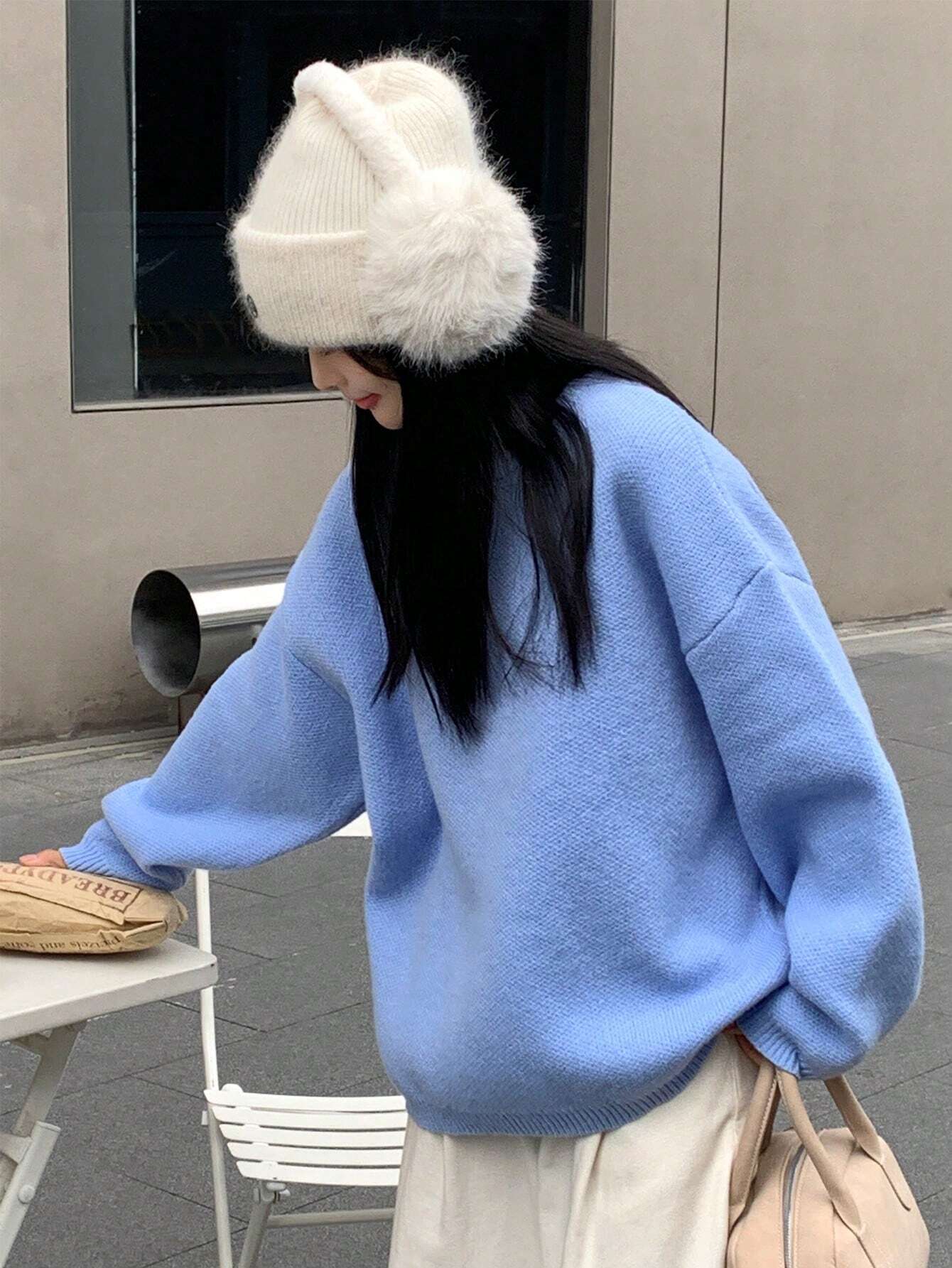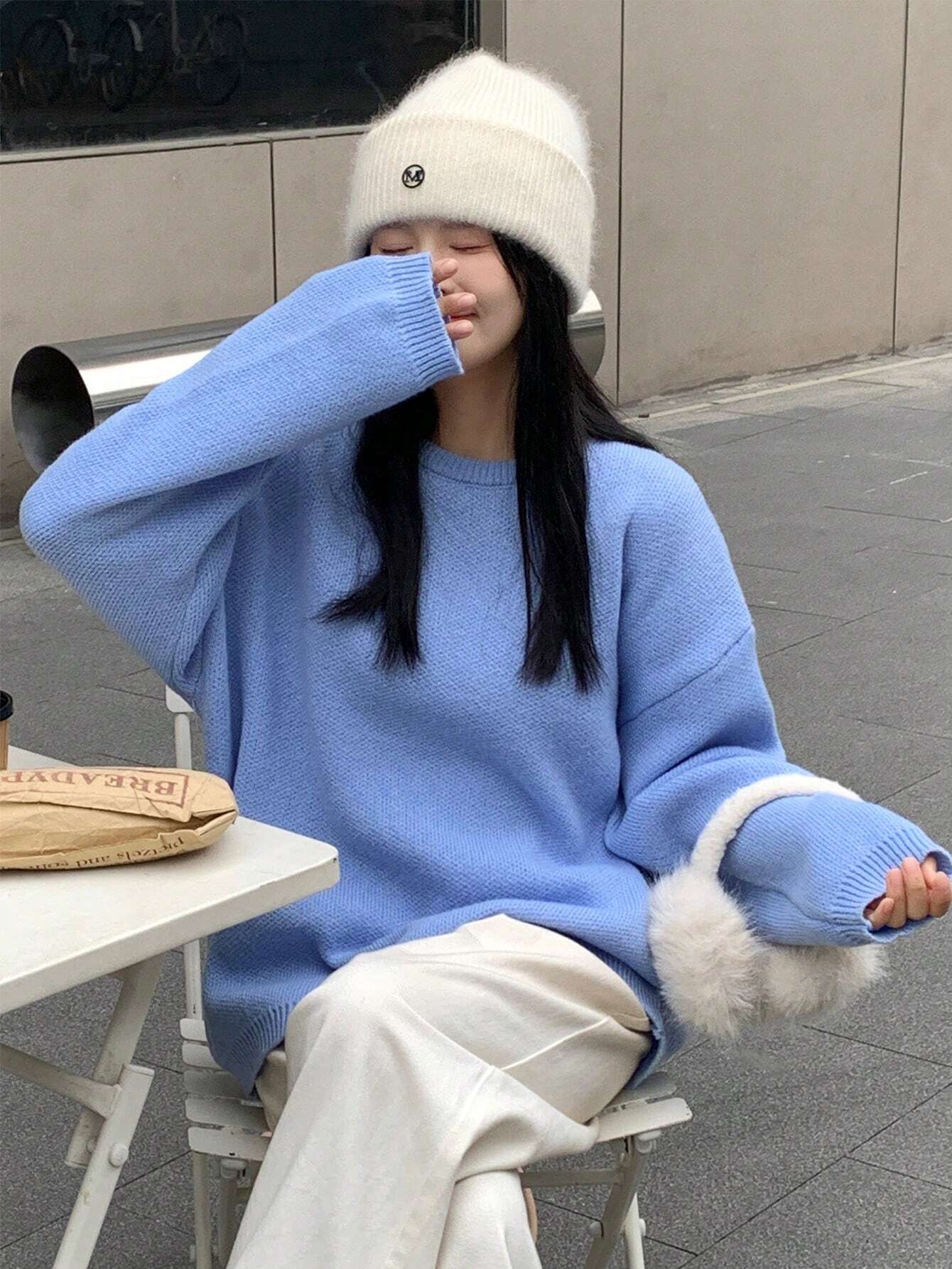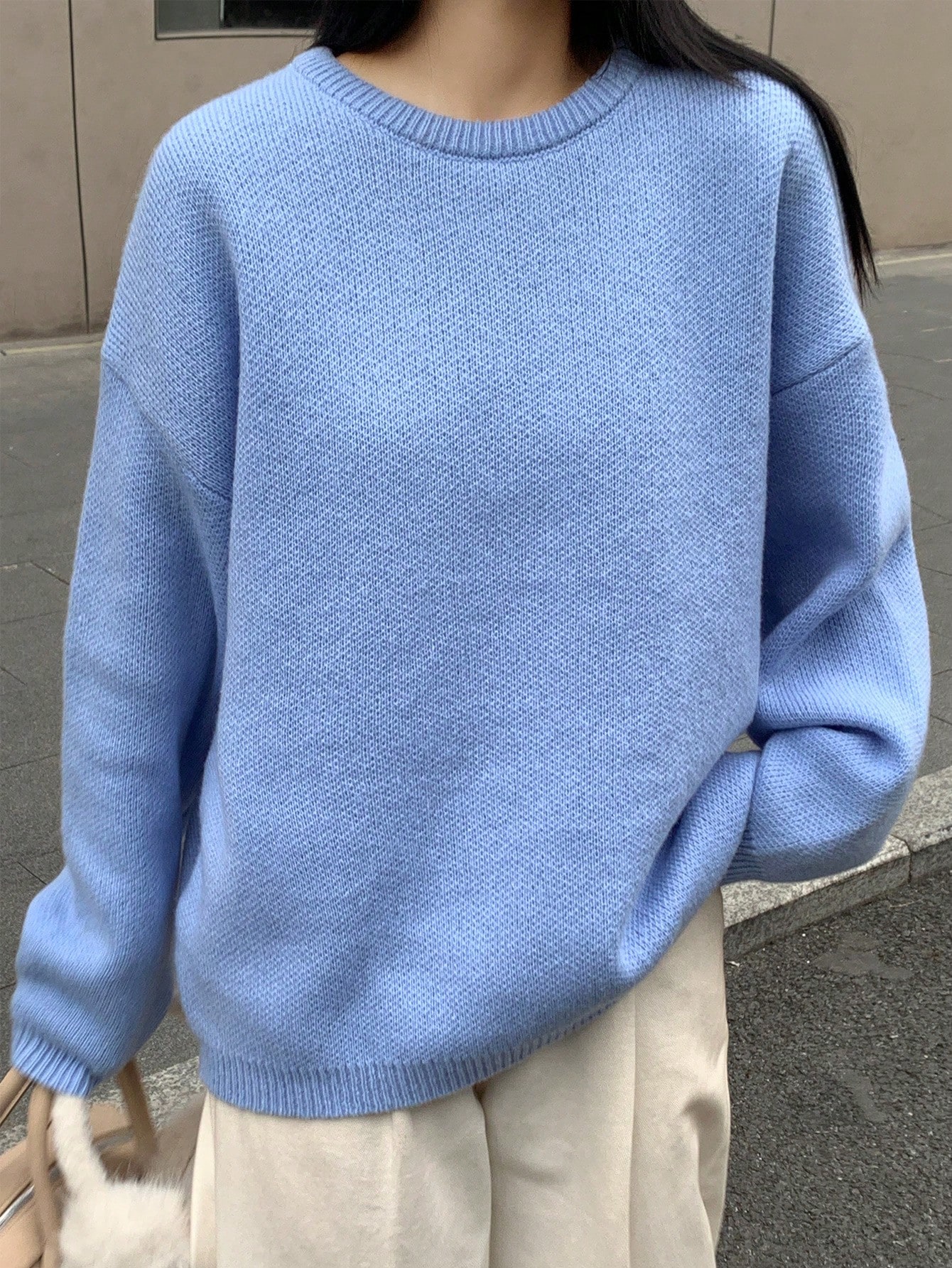 Upgrade your casual wardrobe with the INAWLY Soft Knit Sweater. Designed for ultimate comfort and timeless style, this sweater features a round neckline, drop shoulder design, and a soft fuzzy texture in a calming blue shade. Its relaxed fit makes it perfect for layering or wearing on its own during the cooler autumn and winter months. Whether you're running errands or enjoying a cozy weekend, this sweater will keep you warm and effortlessly stylish.